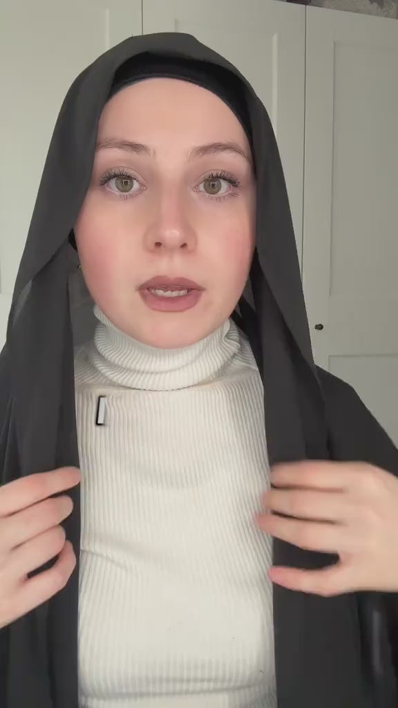 Zieh ihn wie eine Haube an (sie ist fest mit dem Hijab vernäht)